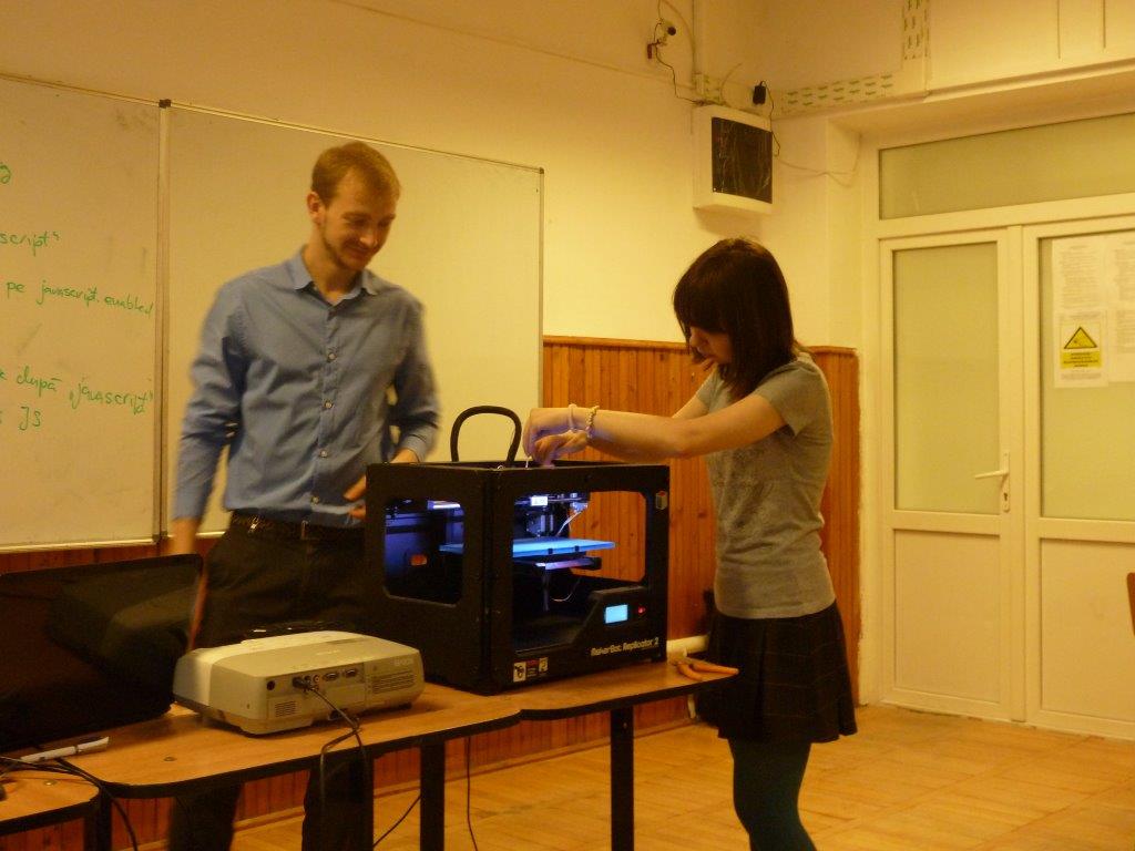 Vineri, marcăm finalizarea cursului la Colegiul Naţional de Informatică Tudor Vianu alături de Ministerul Educaţiei şi Inspectoratul Şcolar al Municipiului Bucureşti. Vom asista la o sesiune de demostraţii 3D printing şi o dezbatere pe tema importanţei noilor tehnologii în educaţia generaţiilor viitoare. Vom intra în universul 3D cu elevii şi profesorii de la curs şi vom testa 3D printing împreună cu alţi liceeni şi profesori interesaţi. Tot atunci vom discuta despre posibilitatea de a integra un modul structurat de tehnici de imprimare 3D la nivelul educaţiei formale, non-formale sau informale.