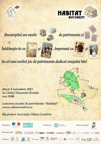 Marti, 8 noiembrie, la Clubul Taranului Roman a avut loc lansarea proiectului Habitat – un joc de societate (boardgame) realist centrat pe orasul Bucuresti, proiect de educatie culturala initiat de Asociatia Odaia Creativa si sustinut de Fundatia ECDL ROMANIA.